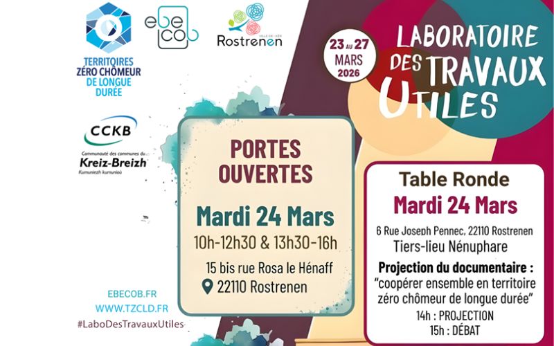 📢 C'est officiel !Le mardi 24 mars, l'EBECOB vous ouvre ses portes ! 🚪 Venez découvrir nos métiers, nos ateliers et échanger avec ceux qui font vivre l'entreprise au quotidien.Que vous soyez habitant, partenaire ou simplement curieux, on vous attend nombreux à Rostrenen pour le Laboratoire des Travaux Utiles ! 📍15 bis Rue Rosa Le Hénaff, 221#TZCLDtrenen #TZCLD ... See MoreSee Less